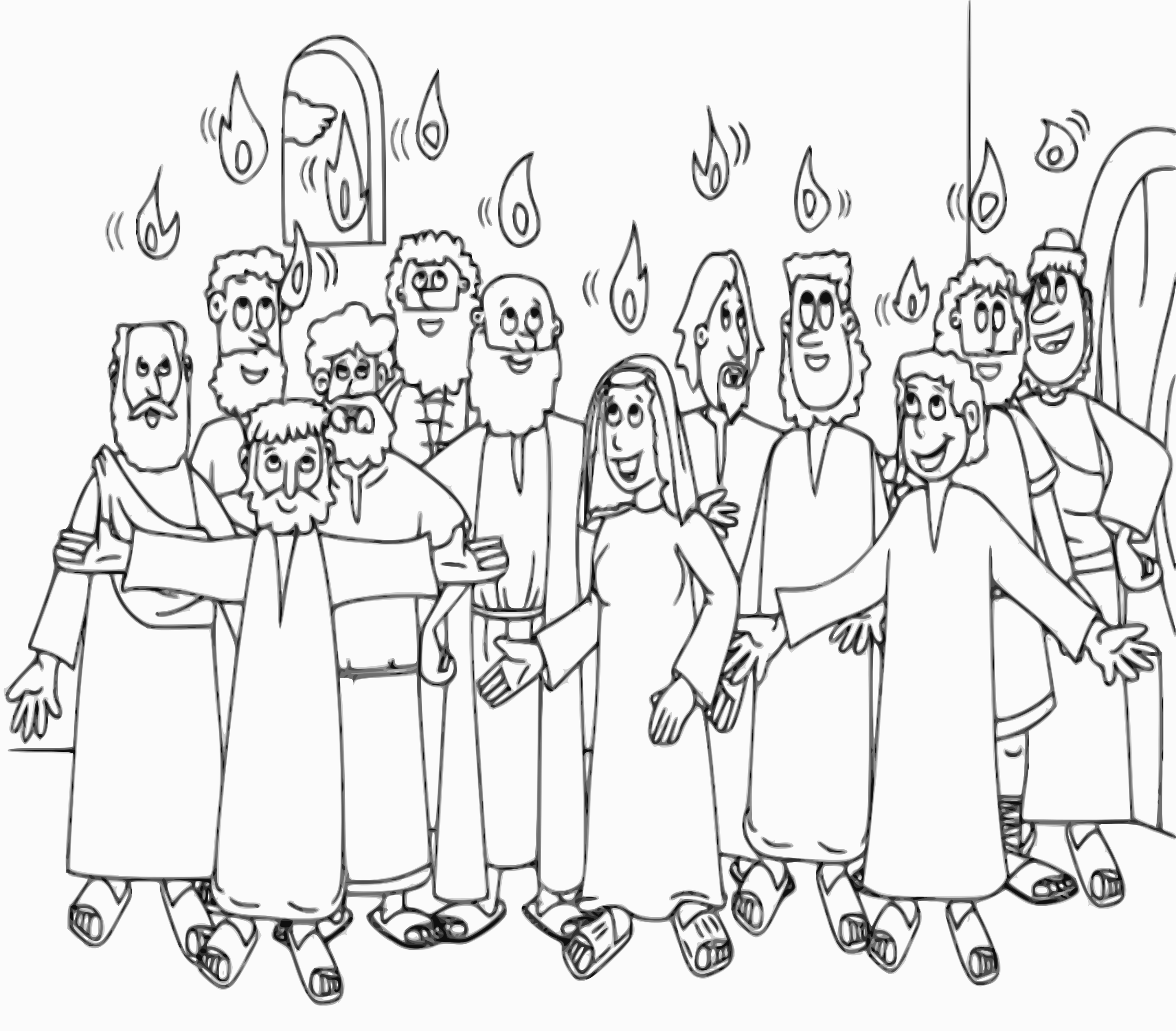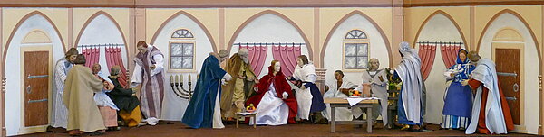 In jeweils zu den Wochenenden umgestalteten Darstellungen wird sich der Abendmahlssaal, in dem die Jünger und Maria sich versammelt hatten, verändern. Beim letzten Bild wird es dann ganz deutlich. Aus Papier gebastelte Flammen und Tauben schweben gleichsam über dem Raum als Zeichen des Heiligen Geistes. Und hierzu sind besonders alle Kinder wieder eingeladen mitzumachen.