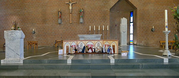 Recht herzlichen Dank an die Mitglieder des Liturgieausschusses von St. Sebastian, die Heimatfreunde Roisdorf und das Katholische Familienzentrum, die die Pfingstkrippe wieder ermöglichen und die Aktion begleiten.