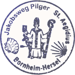 Der Pilgerstempel von Sankt Aegidius Hersel befindet sich im unteren Fach eines Schreibpultes nahe eines Beichtstuhles und ist während der Öffnungszeiten der Kirche erhältlich.