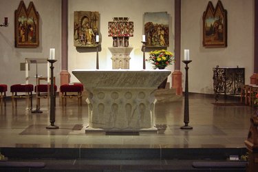Im Jahr 1973 wurde der Altarraum nach den Vorgaben des zweiten vatikanischen Konzils (1962-1965) neugestaltet. Der ursprüngliche neugotische Hochaltar aus dem Jahre 1901 wurde ersetzt durch den heutigen Altar, den der Bildhauer Olaf Höhnen (* 1933, † 2009) geschaffen hat. Er ist der Tisch des Herrn, an dem die Gemeinde in der gemeinsamen Messfeier Anteil hat, und zugleich der Mittelpunkt der Eucharistiefeier. Nach den Richtlinien des Konzils steht er frei, damit der Priester an ihm, der Gemeinde zugewandt, die heilige Messe feiern kann. Den Altar hat der Künstler aus einem mächtigen Natursteinblock heraus gehauen. Es handelt sich um Trachyt-Stein aus dem Westerwald, die Schichtung des Steins ist gut zu sehen. Auf dem bildhauerisch schön geprägten Sockel ruht die schwere Altarplatte, in die das Reliquiar eingelassen ist. Der Altar wurde zum Patrozinium 1973 fertiggestellt und am 7. Oktober 1973 durch Bischof Vitus Chang feierlich konsekriert.