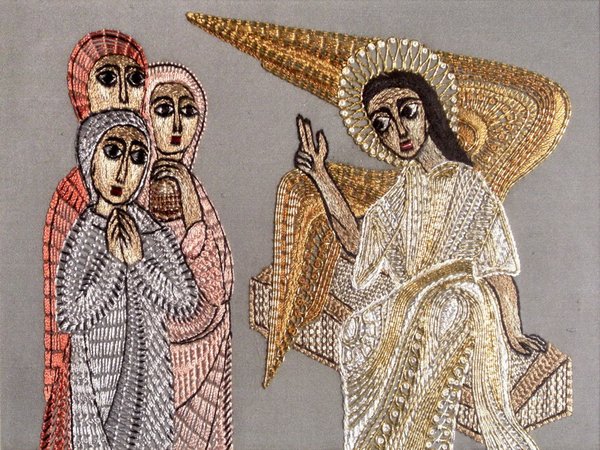 Am ersten Tag der Woche gingen die Frauen mit den wohlriechenden Salben, die sie zubereitet hatten, in aller Frühe zum Grab. Da sahen sie, dass der Stein vom Grab weggewälzt war; sie gingen hinein, aber den Leichnam Jesu, des Herrn, fanden sie nicht. Während sie ratlos dastanden, traten zwei Männer in leuchtenden Gewändern zu ihnen. Die Frauen erschraken und blickten zu Boden. Die Männer aber sagten zu ihnen: Was sucht ihr den Lebenden bei den Toten? Er ist nicht hier, sondern er ist auferstanden. (Lk 24,1-6)